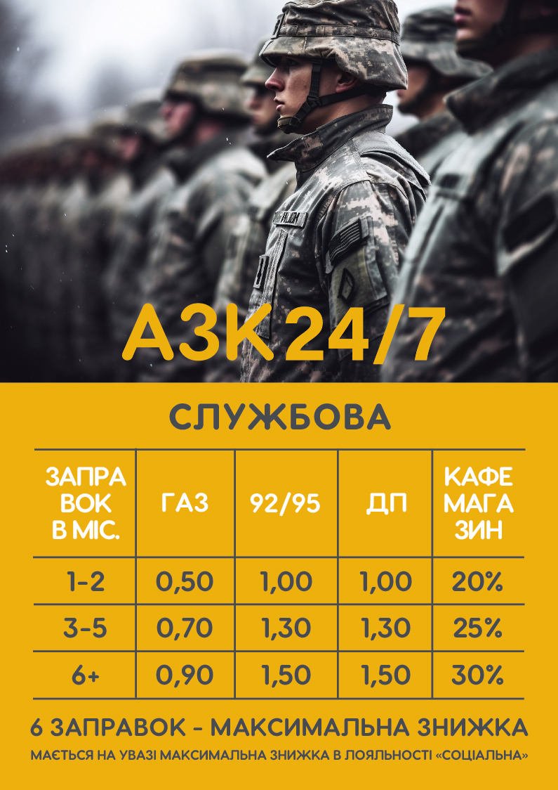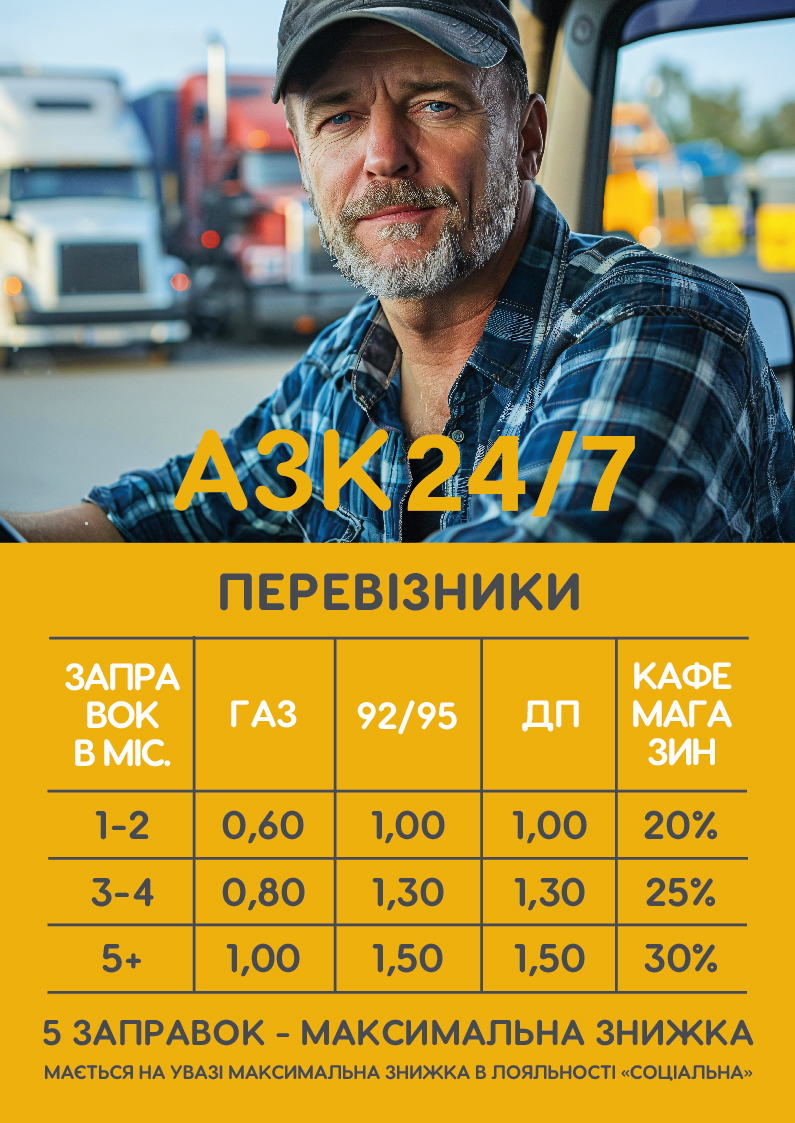 Діє для клієнтів, які заправляють транспорт на суму не менше 50 літрів за одну операцію.